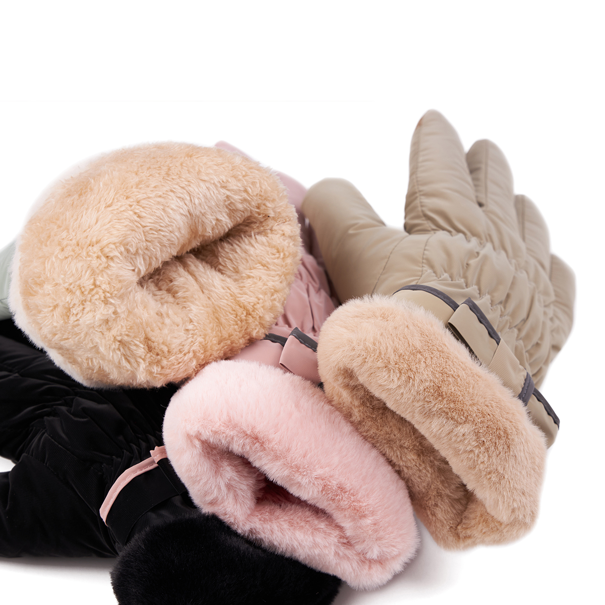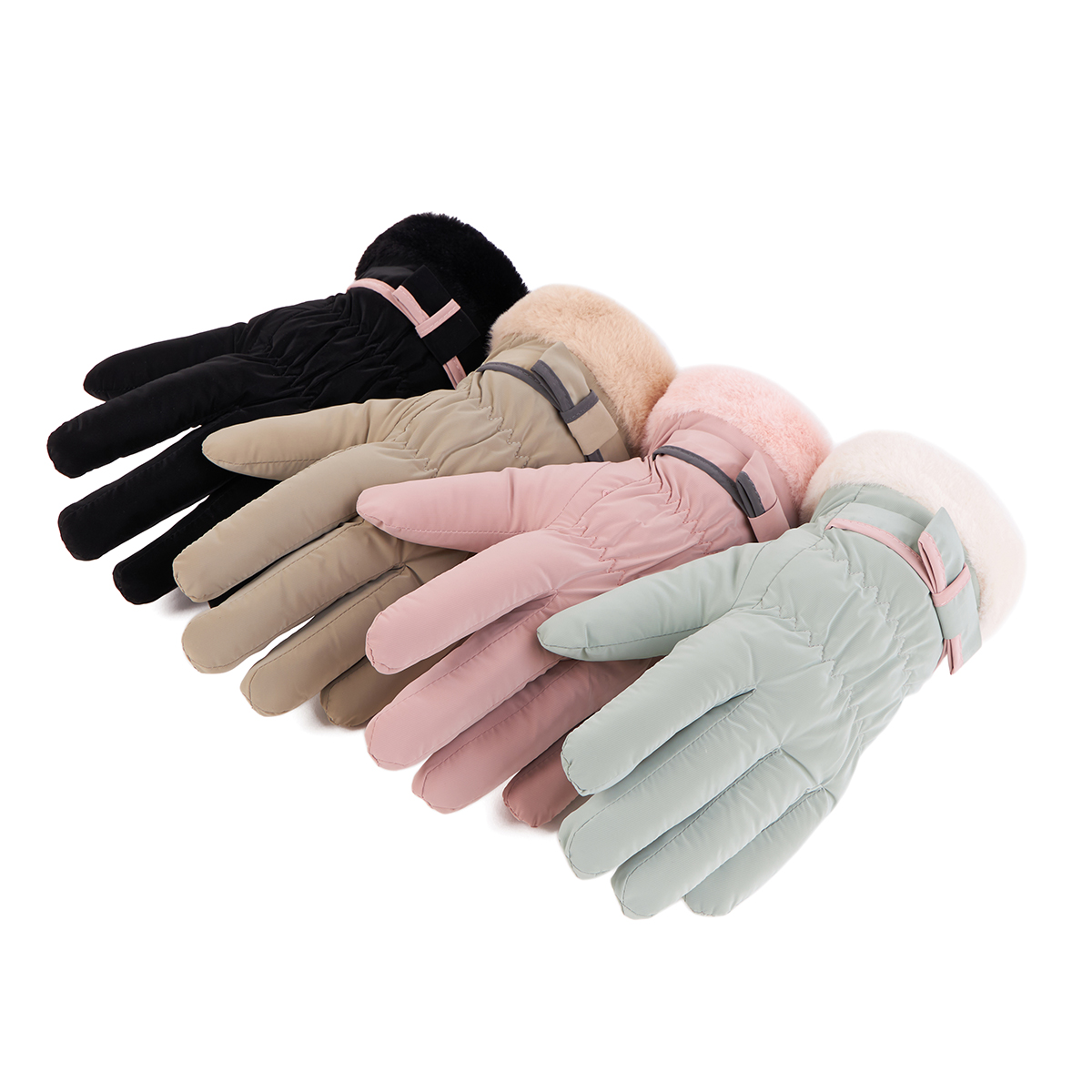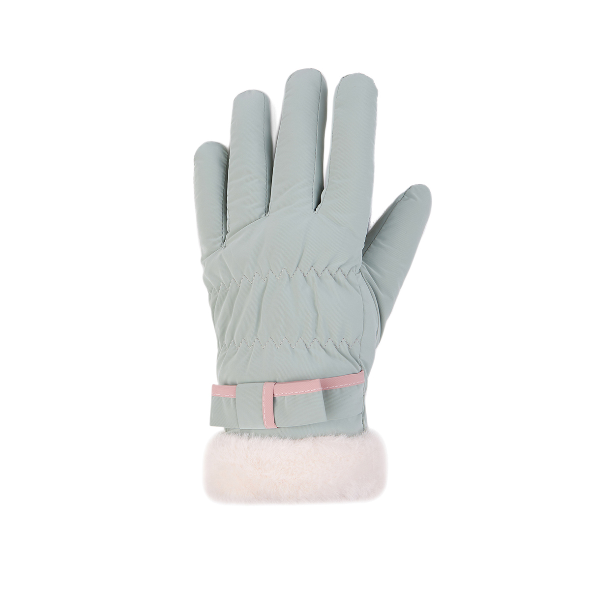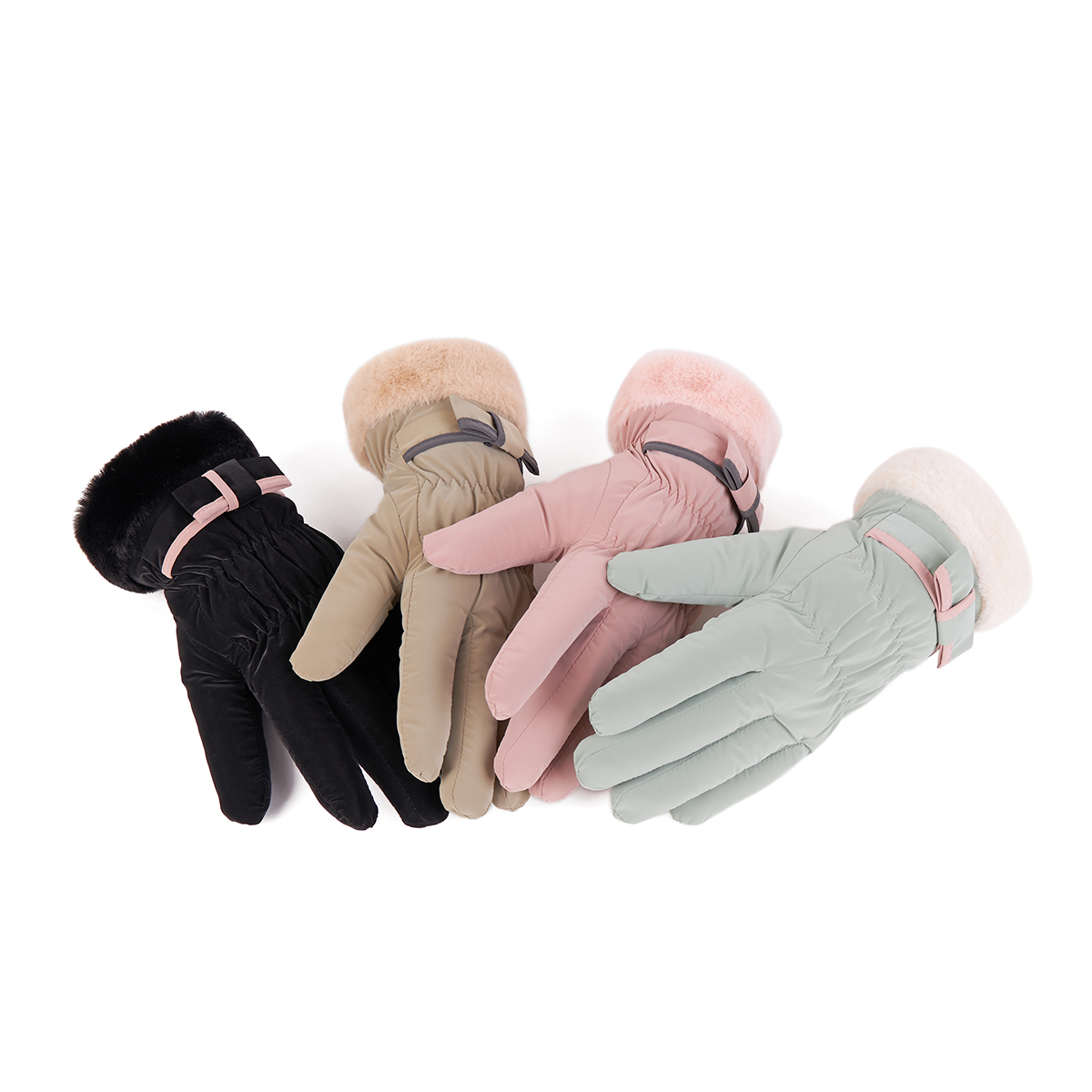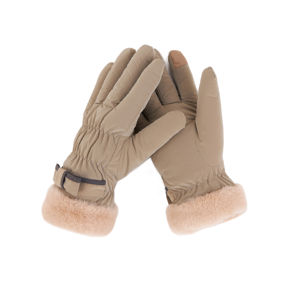 ถุงมือกันหนาว วัสดุเป็นผ้า ด้านในบุขนนุ่มๆและกันหนาวได้ดี ดีไซน์น่ารักมาก ช่วงข้อมือแต่งขนนุ่มๆและโบว์เล็กๆ น่ารักมากค่ะ สามารถทัชสกรีนเล่นโทรศัพท์ได้ที่นิ้วชี้ (การทัชสกรีนจะไม่ 100% เท่ากับถุงมือหนัง) มีให้เลือก 5 สี ชมพู , เขียวมิ้น , เทา , ดำ , ครีม