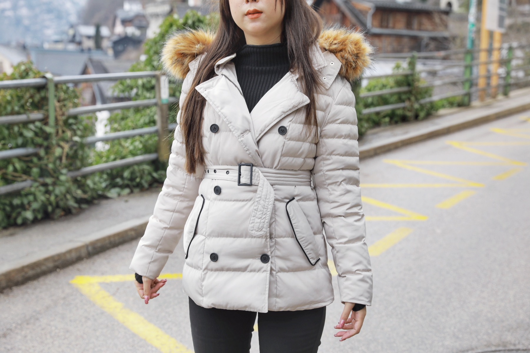 เสื้อขนเป็ด ที่มีดีไซน์ล้อค 2 ชั้น ด้วยด้านในที่เป็นซิป และสามารถติดกระดุมด้านนอก